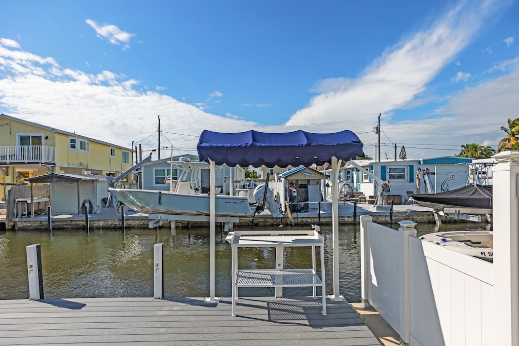 The dock is 50' and there is parking on the side of the house for truck and trailer. Additional parking under and in front of the house, but not parking in the street please. Two vehicles recommended. Three max.
