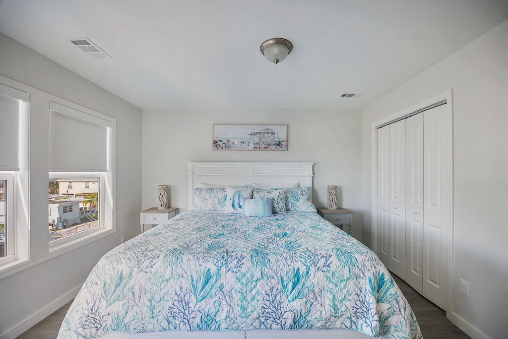 All 3 bedrooms are upstairs. All bedrooms have TVs! All linens and towels (both bath and pool/beach) are provided!
